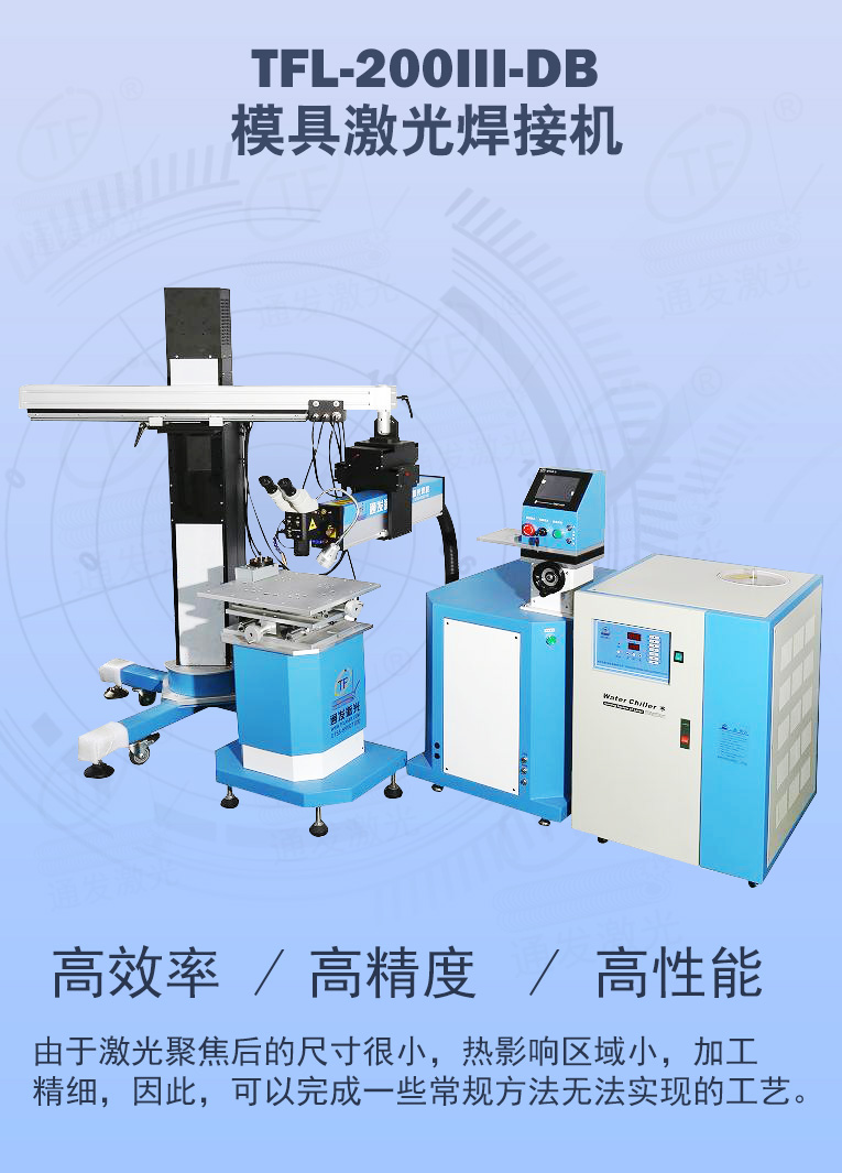 TFL-200Ⅲ-DB型模具激光焊機是通發(fā)激光公司在TFL-180Ⅲ的基礎(chǔ)進行了改良,采用通發(fā)自主研發(fā)的二代精密單燈電源為燈泵浦驅(qū)動電源,操作更方便。主機具備激光頭手搖升降與工作臺按鈕電動升降實現(xiàn)焊接不同厚度模具的激光焊加工。本款機型更適用于各類高精密注塑模具激光補焊,精密塑膠模具零件激光修補,塑膠模具鈹銅零件激光燒焊;可對模具使用過程中出現(xiàn)的磨損進行激光修復(fù);對機械加工失誤、電火花加工失誤,模具減膠設(shè)計變更等需要對模具修改,起到關(guān)鍵的作用,可彌補應(yīng)加工失誤造成的巨大損失。