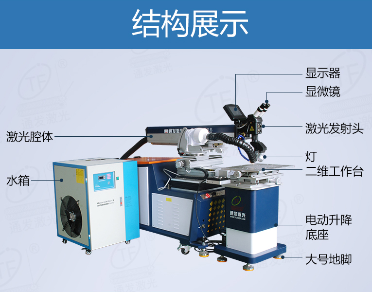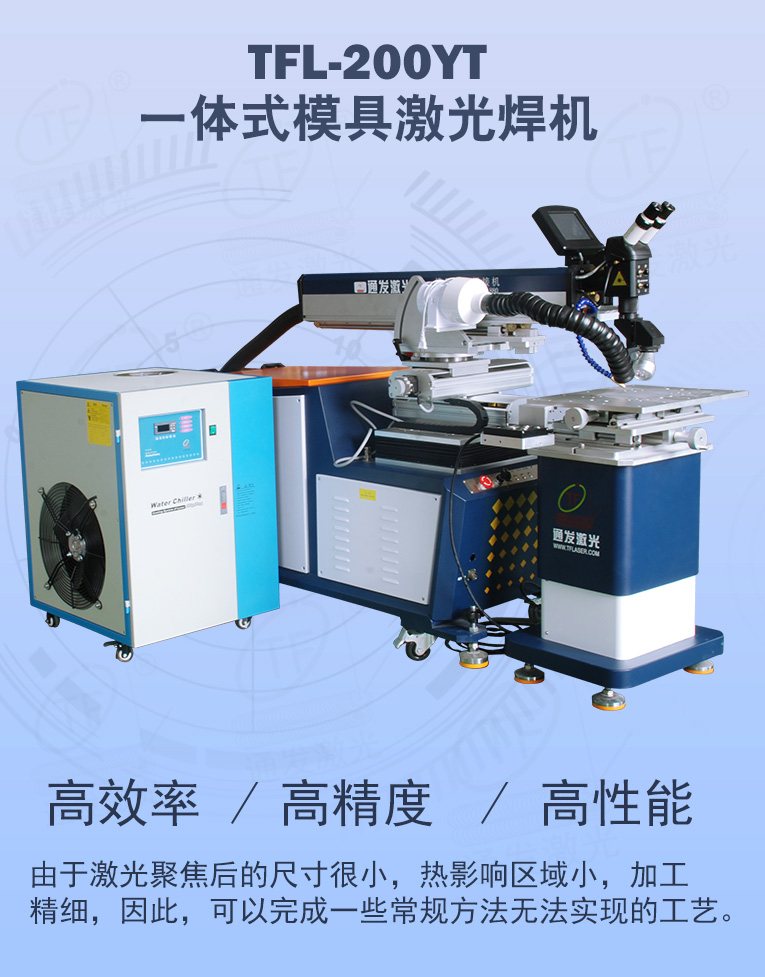 出口型模具激光焊機(jī)是通發(fā)激光公司專門為出口國(guó)外客戶使用而設(shè)計(jì)的系列機(jī)型TFL-200E,適用于各類精密注塑模具、壓鑄模具等模具激光修補(bǔ)焊接;同時(shí)也適合鑄件沙孔激光修補(bǔ)、模具崩缺激光修復(fù)、過切加工等的激光修補(bǔ);各類金屬結(jié)構(gòu)件、金銀首飾的激光焊接加工。