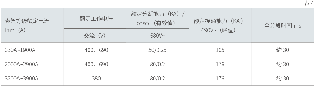 (2)本表中 DW17-1900、DW17-2900 為交流至 690V 數(shù)據(jù),DW17-3900 為交流 380V 數(shù)據(jù)。