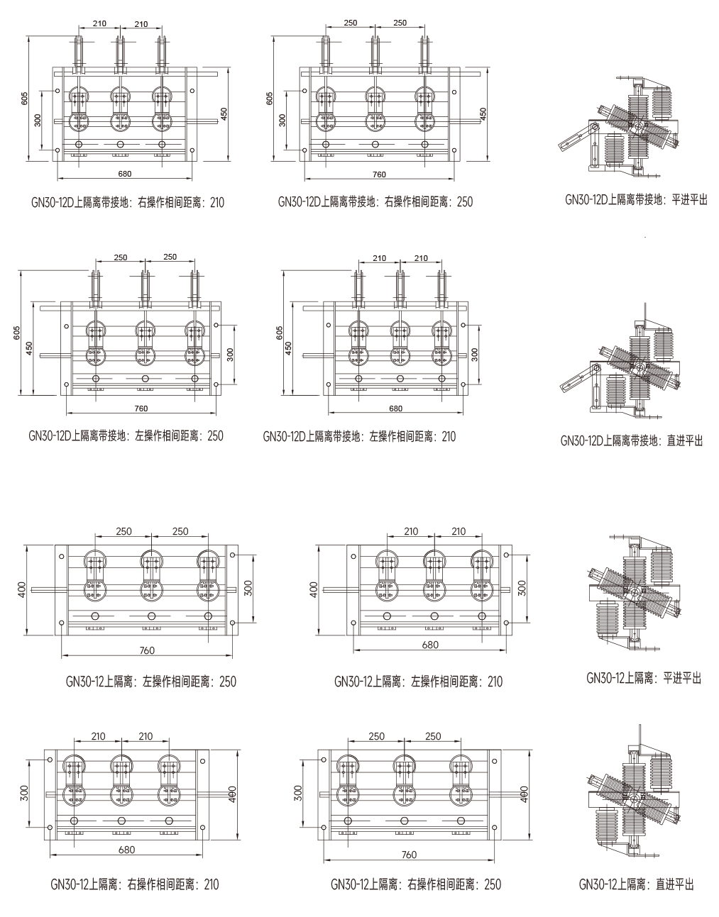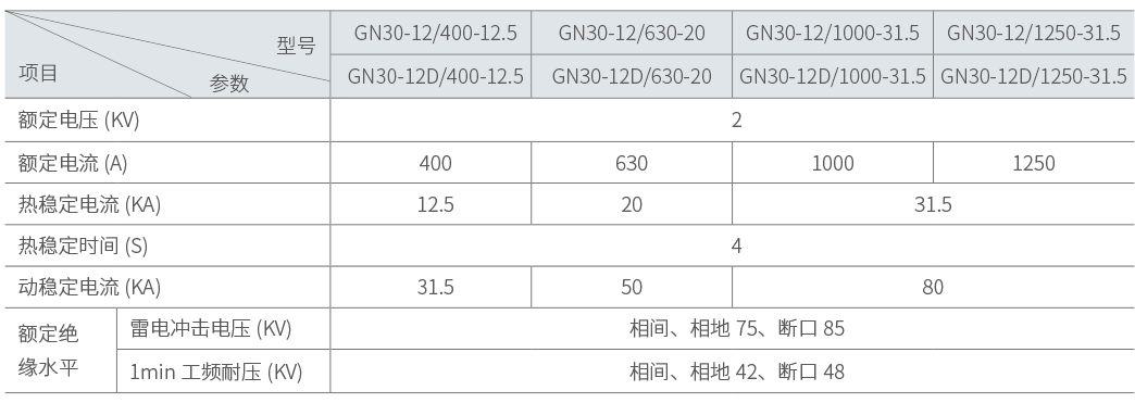 GN30-12D 型開關(guān)是在 GN30-12 型開關(guān)基礎(chǔ)上增加帶接地刀的形式,可滿足不同電力系統(tǒng)的需要。本產(chǎn)品設(shè)計緊湊、占用空間小、絕緣能力強、易于安裝調(diào)整,其性能符合 GB1985-89 《交流高壓隔離開關(guān)和接地開關(guān)》的要求,適用于額定電壓 10 千伏交流 50Hz 及以下戶內(nèi)系統(tǒng)中,作為在有電壓無負載情況下,分合電路之用??膳c高壓開關(guān)柜配套使用,也可單獨使用。