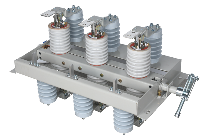 GN30-12 型旋轉(zhuǎn)式戶內(nèi)高壓隔離開關(guān)是一種旋轉(zhuǎn)觸刀式的新型隔離開關(guān),主要結(jié)構(gòu)是在三相共底架的上、下兩個平面上,固定兩組絕緣子及觸頭,通過旋轉(zhuǎn)觸刀,從而實現(xiàn)開關(guān)的分合閘。