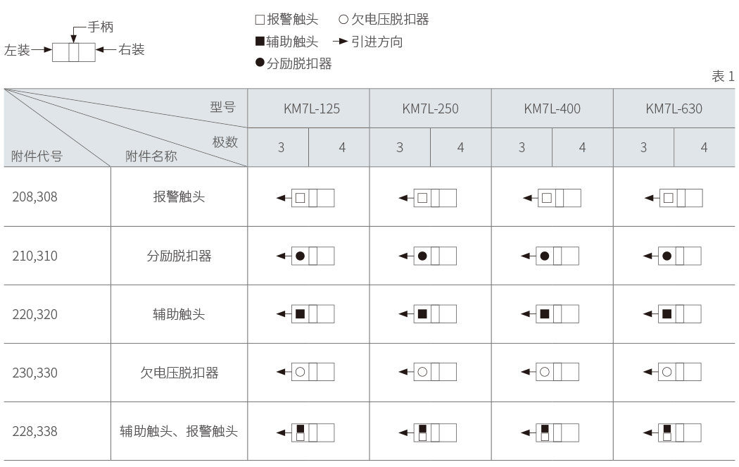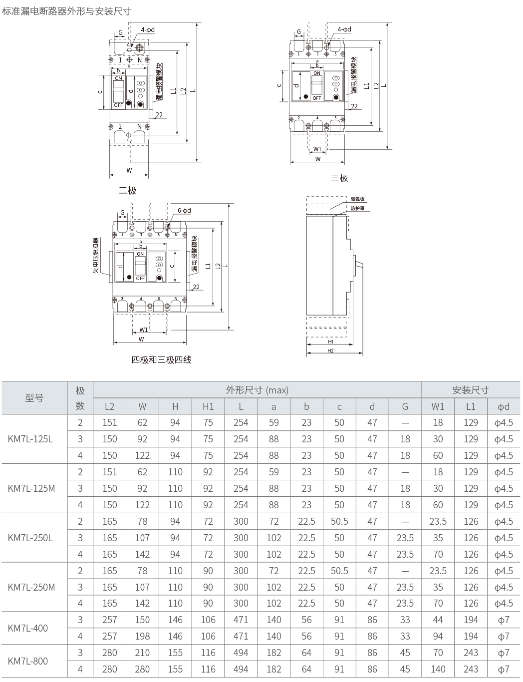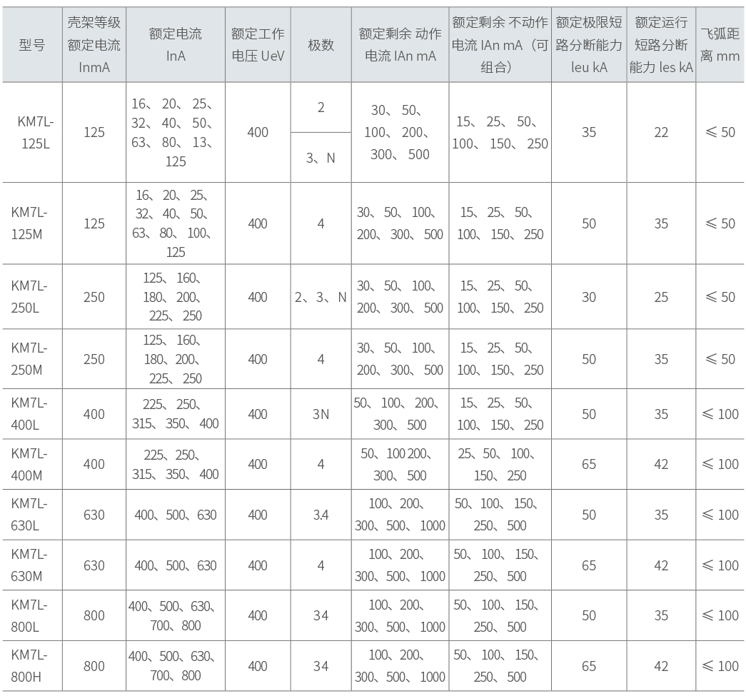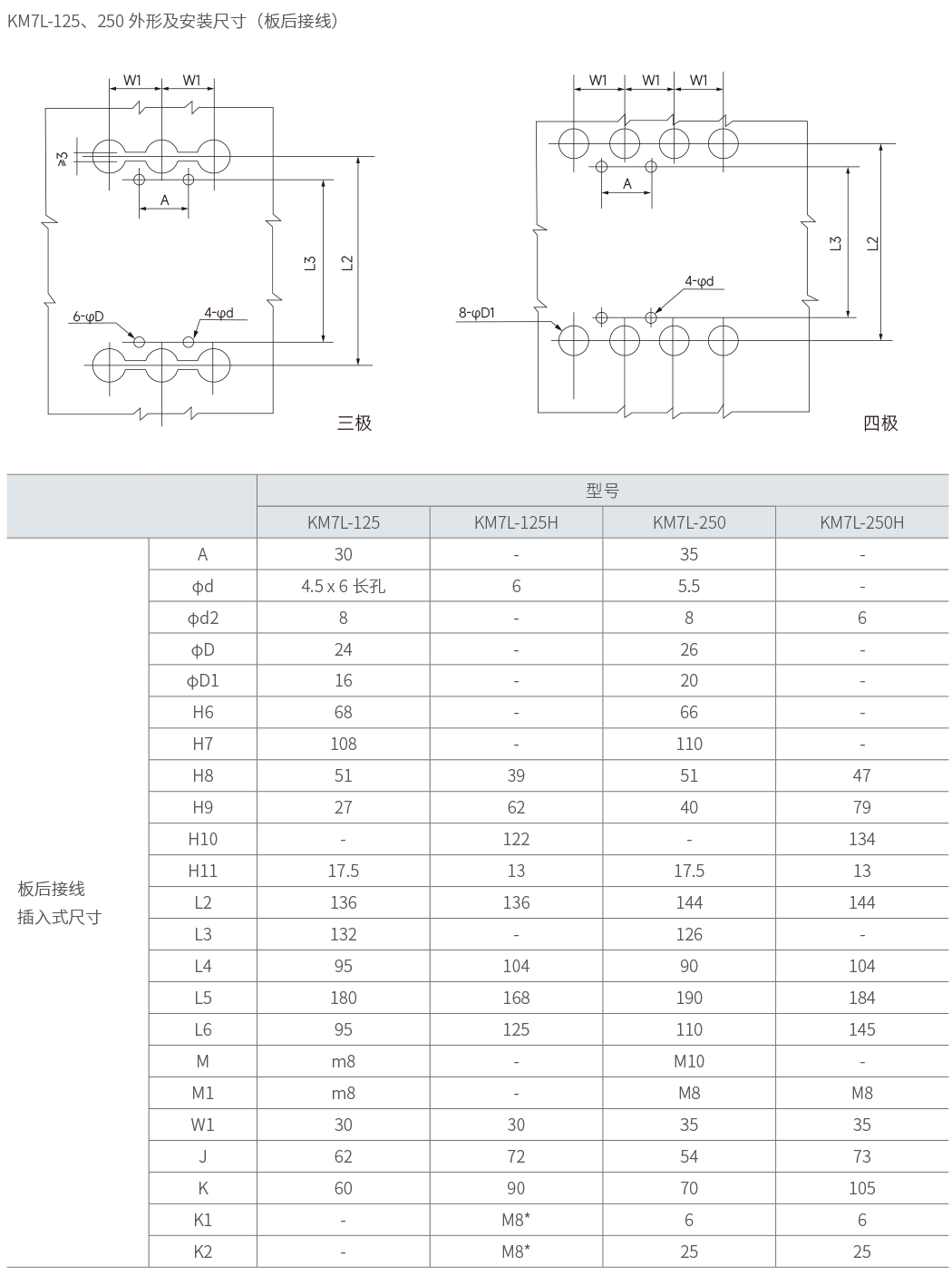 KM7L-250 為 100、125、140、160、180、200、225、250A 八極。
