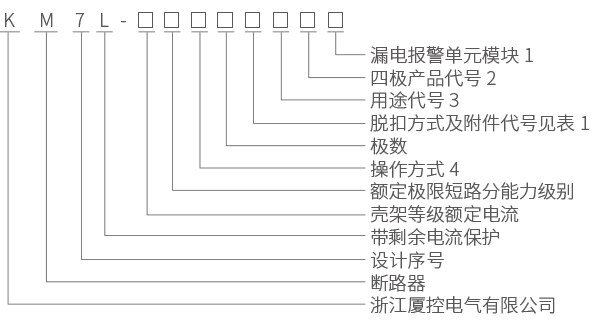 KM7L 系列帶剩余電流保護(hù)型塑料外殼式斷路器 ( 以下簡(jiǎn)稱(chēng)斷路器 ),是本公司采用國(guó)際先進(jìn)設(shè)計(jì)、制造技術(shù)研制、開(kāi)發(fā)的新型斷路器之一。其額定絕緣電壓為 800V,適用于交流 50Hz,額定工作電壓 400V,額定工作電流至 630A 的電路中作不頻繁轉(zhuǎn)換及電動(dòng)機(jī)不頻繁起動(dòng)之用,斷路器具有過(guò)載、短路和欠電壓保護(hù)功能,能保護(hù)線(xiàn)路和電源設(shè)備不受損壞,同時(shí)還可以對(duì)過(guò)電流保護(hù)不能檢測(cè)出的長(zhǎng)期存在的接地故障可能引起火災(zāi)危險(xiǎn)提供保護(hù)。