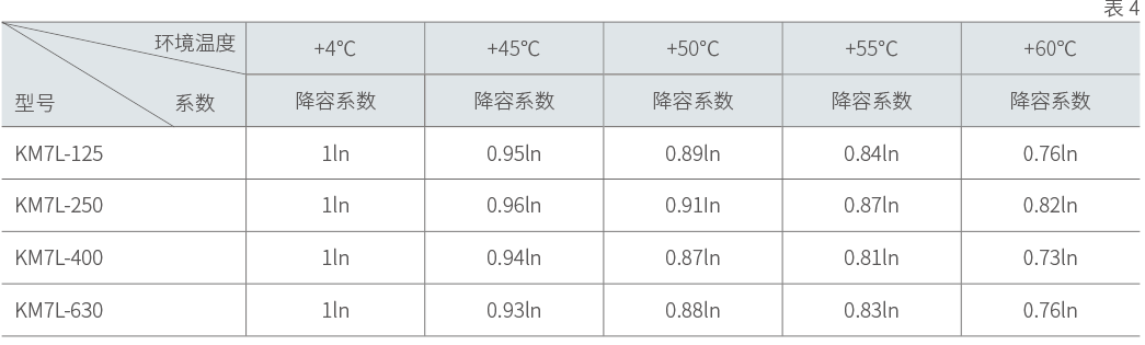 KM7L-400 為 225、250、315、350、400A 五級(jí);