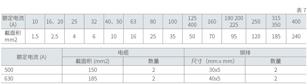 連接導(dǎo)線(xiàn)的截面積與相適應(yīng)的額定電流見(jiàn)表 7