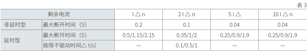 剩余電流保護(hù)動(dòng)作時(shí)間見(jiàn)表 3