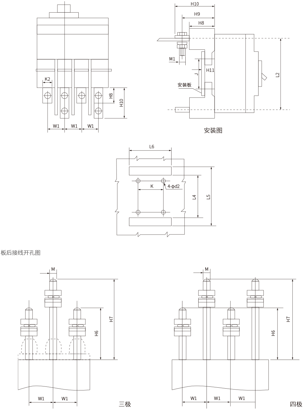 按產(chǎn)品極數(shù)分為三極與四極。四極產(chǎn)品中中極(N 極)的形式分四種
