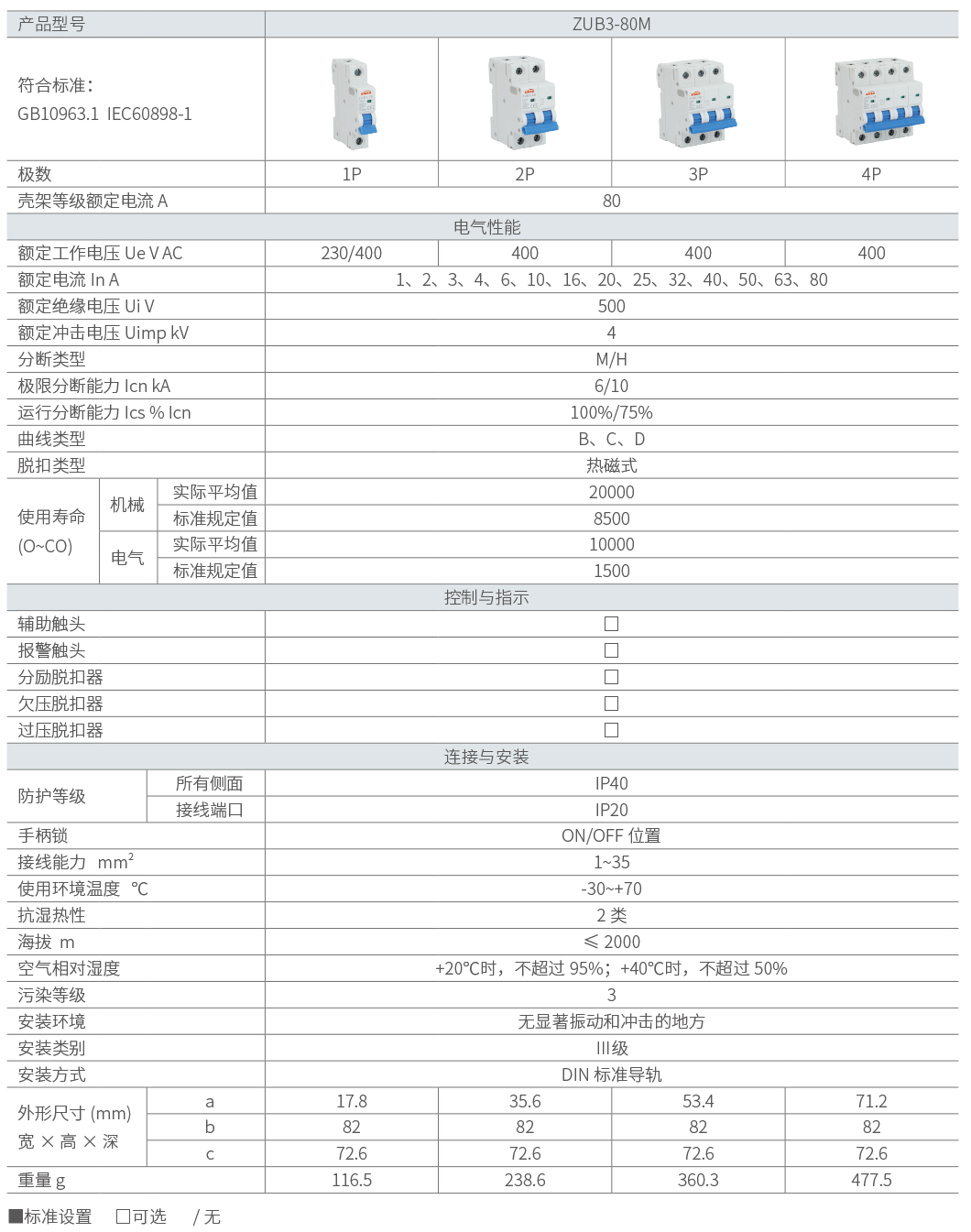 ●殼架等級(jí)高 (18 模數(shù) 80A),分?jǐn)嗄芰Ω?(10kA),附件適應(yīng)性強(qiáng)。