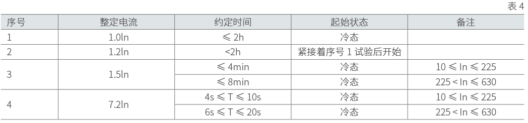 電動機(jī)保護(hù)用斷路器過電流脫扣器各極同時通電時的反時限斷開動作特性(見表 4)
