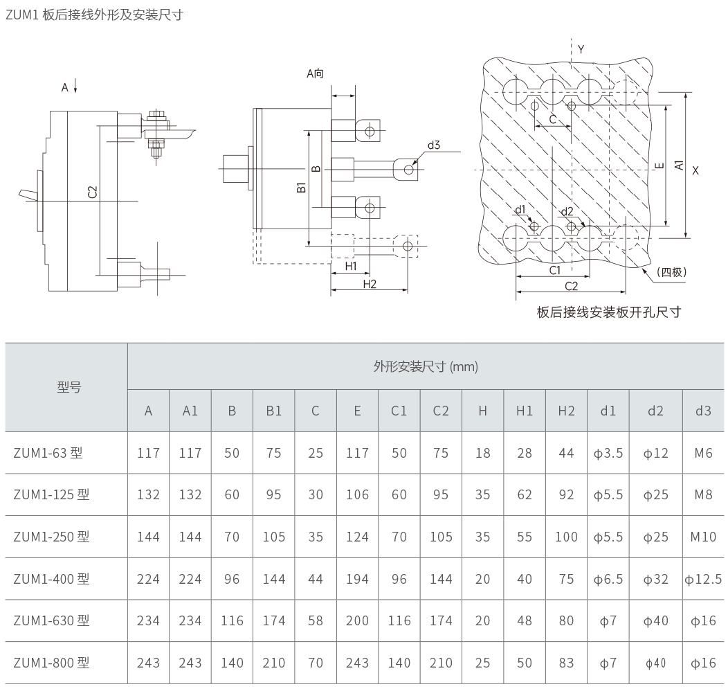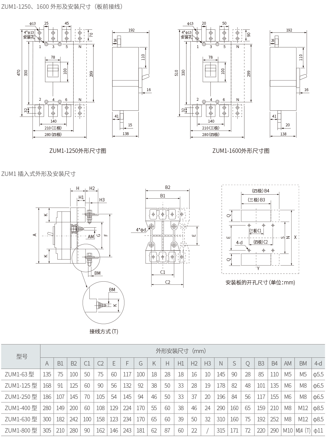 ZUM1 系列塑料外殼式斷路器(以下簡稱斷路器)是本公司綜合采用國際先進(jìn)技術(shù)設(shè)計、開發(fā)的新型斷路器之一。該斷路器額定絕緣電壓至 690V(63 型為 500V),適用于交流 50Hz 或 60Hz,額定工作電壓至 690V,額定工作電流 6A 至 1250A 的配電網(wǎng)絡(luò)電路中,用來分配電能各保護(hù)線路及電源設(shè)備免受過載、短路、欠電壓等故障的損壞。同時也作為電動機(jī)的不頻繁起動及過載、短路、欠電壓保護(hù)。該斷路器具有體積小、分?jǐn)喔?、飛弧短(或無飛?。┑忍攸c,是用戶使用的理想產(chǎn)品。斷路器垂直安裝(即豎裝),亦可水平安裝(橫裝)。具有隔離功能。該產(chǎn)品系列中,殼架等級從 63-630A 的三極產(chǎn)品還帶有透明蓋,客戶可隨時觀察產(chǎn)品運行情況。